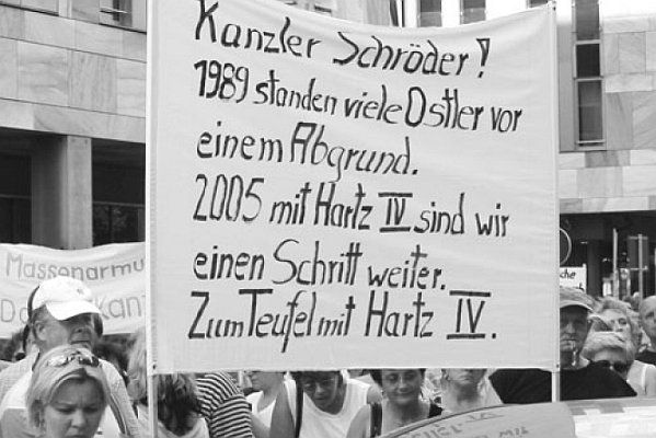 Demonstration „gegen die Wiedervereinigung“ am 12. Mai 1990 in Frankfurt/Main. Die Demonstrantin zeigt die bekannte – und ver- botene – Textzeile von Slime. Die Gleichsetzung des heutigen BRD- Imperialismus mit dem Faschismus ist bis heute ein Irrtum unter ei- nigen Antifaschisten. rf-foto